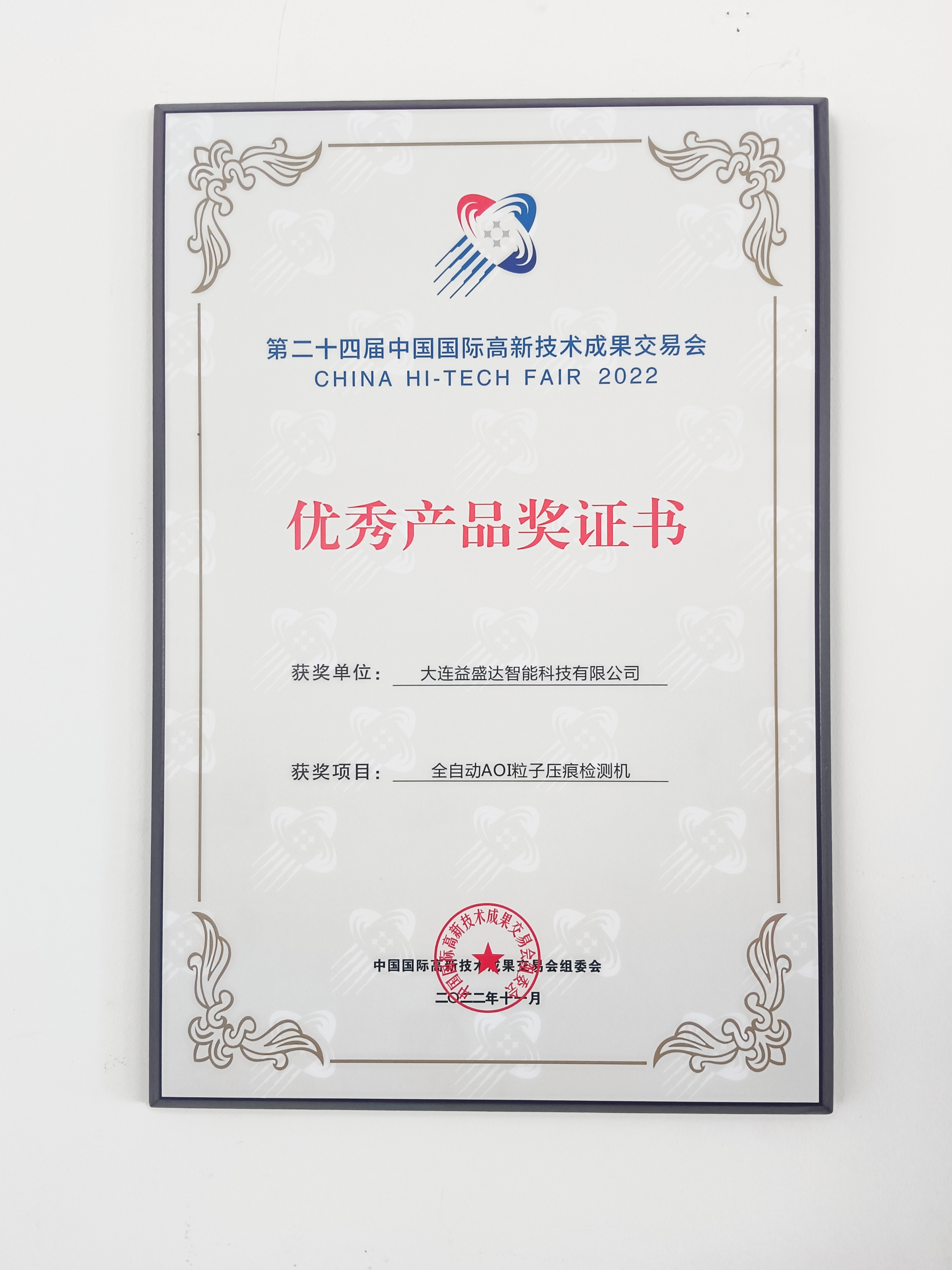 在剛剛落下帷幕的“第二十四屆中國國際高新技術(shù)成果交易會(huì)”(以下簡稱國際高交會(huì)),大連益盛達(dá)智能科技有限公司(以下簡稱“益盛達(dá)公司”)的全自動(dòng)AOI粒子壓痕檢測機(jī),憑借先進(jìn)的檢測功能,榮獲“優(yōu) 秀 產(chǎn) 品 獎(jiǎng)”。